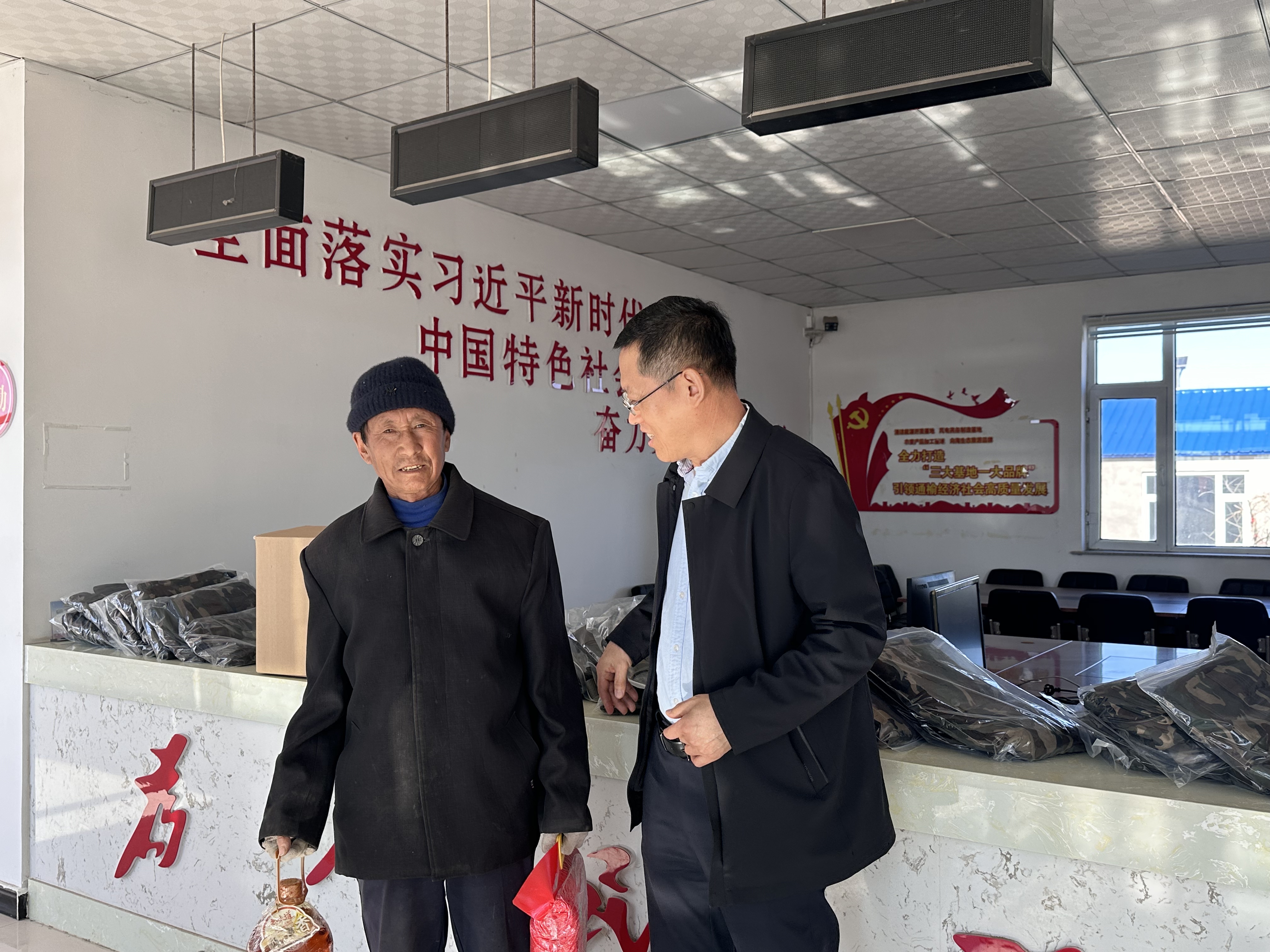 前期参与通榆县乡村振兴的工作情况以及学院发挥专业优势助力通榆县交通局制定“通榆县综合交通运输规划和制定“客货邮融合发展”解决方案的工作。学院党委书记李善兴就乡村振兴在中国式现代化中的体现和加强党建工作对村基层工作的重要作用方面与村委会成员做了工作交流。之后,李善兴书记代表学院向村民捐赠了军训服装,向村里90岁以上年龄老人的家庭捐赠了粮油。此次活动加深了学院与新丰村的沟通交流,歪歪漫画