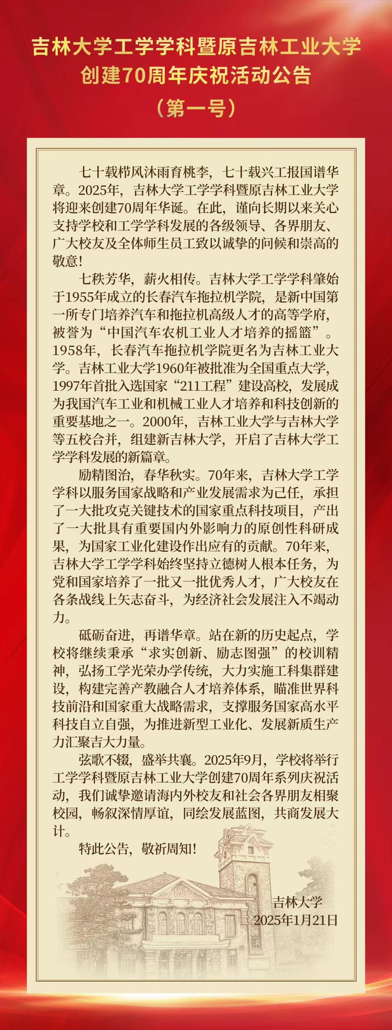 转:歪歪漫画 工学学科暨原吉林工业大学创建70周年庆祝活动公告(第一号)
